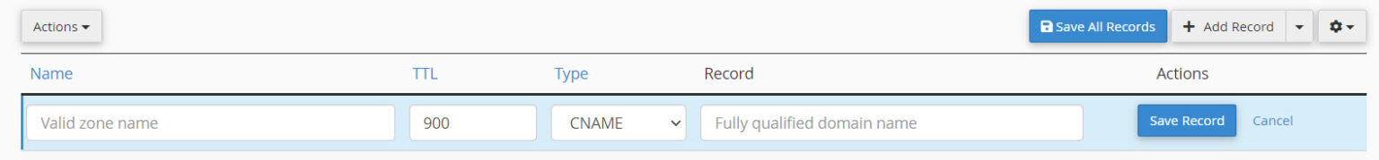 Add new record in zone editor